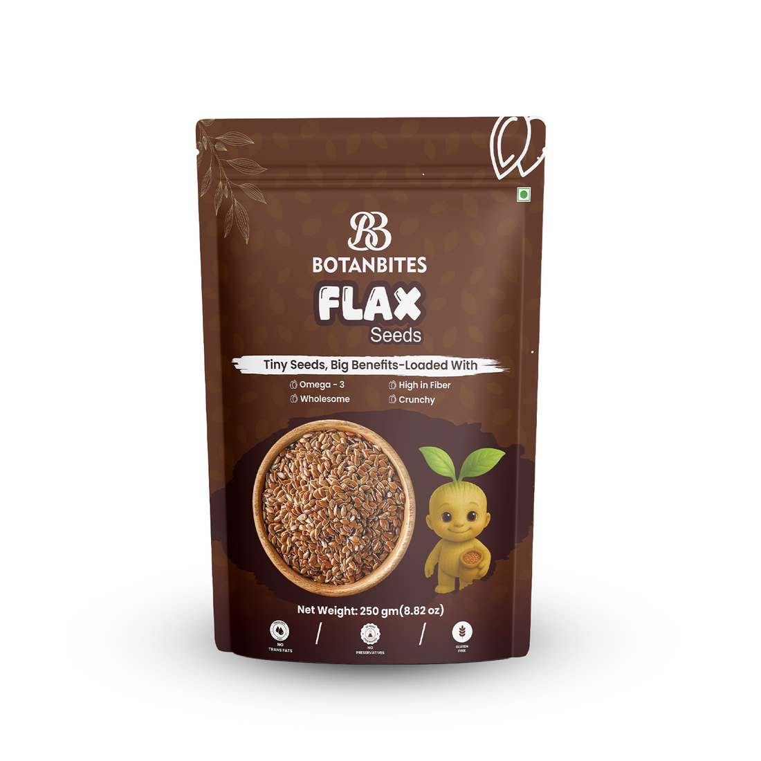 BOTANBITES Flax Seeds 250g | Rich in Omega-3, Fibre & Antioxidants | High Protein Superfood for Digestion, Heart Health & Fat Loss | Raw Seeds for Eating | Vegan & Gluten-Free Snack (250g)