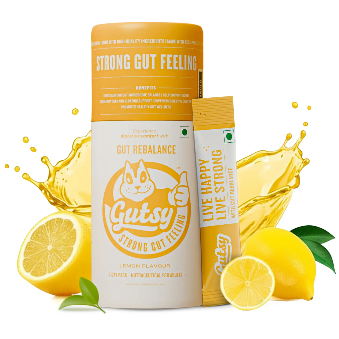 GUTSY Gut Rebalance - 7 Day Pack | Lemon Flavor Synbiotic (Probiotics + Prebiotics) for Instant Bloating Relief, Daily Regularity & Digestive Wellness #StrongGutFeeling