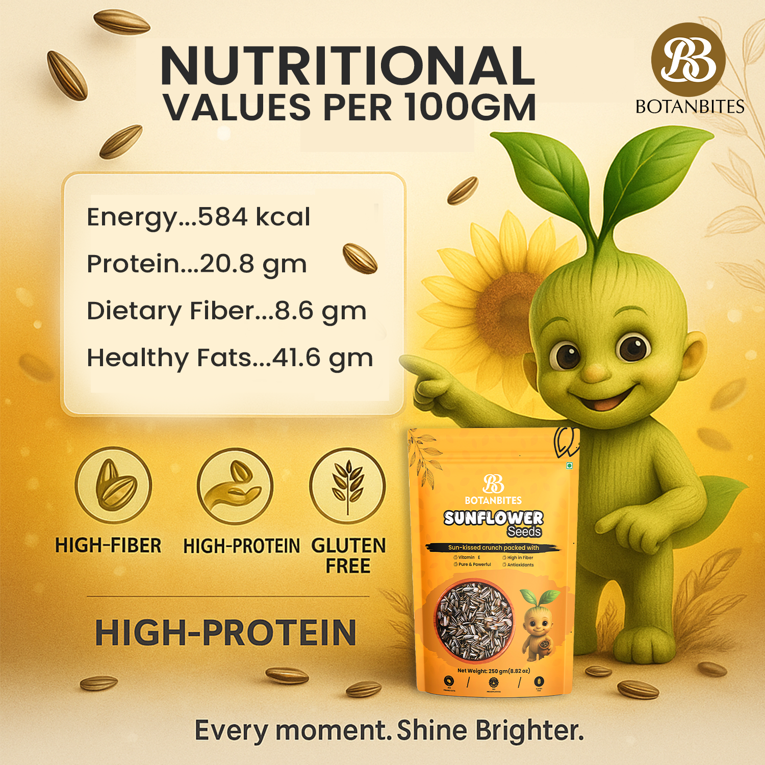 BOTANBITES Sunflower Seeds 250g | High in Fibre & Low in Carb | Protein-Rich Superfood Snack | Surajmukhi Beej | Rich in Omega-6, Zinc, Iron & Vitamin E | Antioxidant-Rich Healthy Snack for Fat Loss (250g)