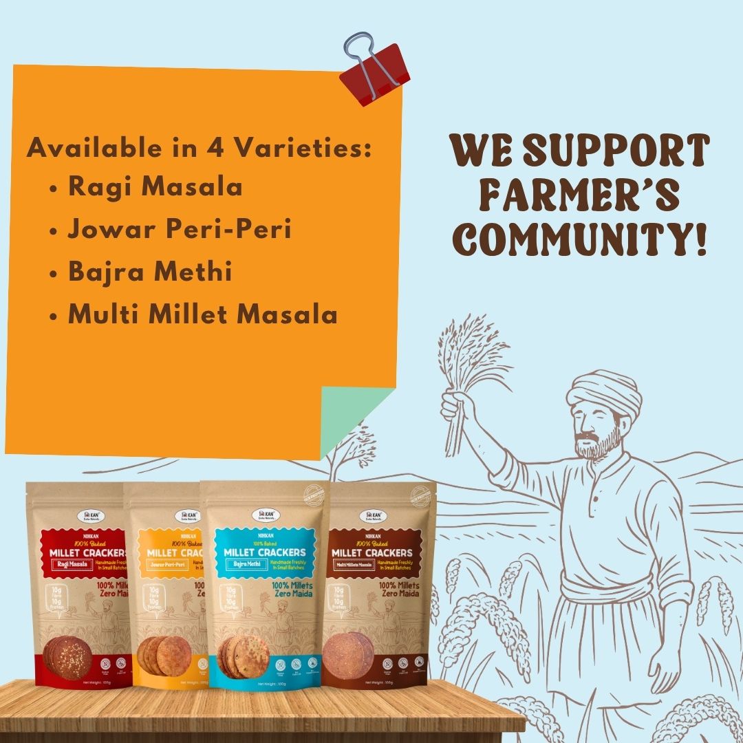- 100% Whole Grains: Experience the nutritional benefits of our crackers made from 100% Millets, carefully selected to provide a superfood snack for your everyday healthy binge, packed with fibre, protein, and essential minerals.