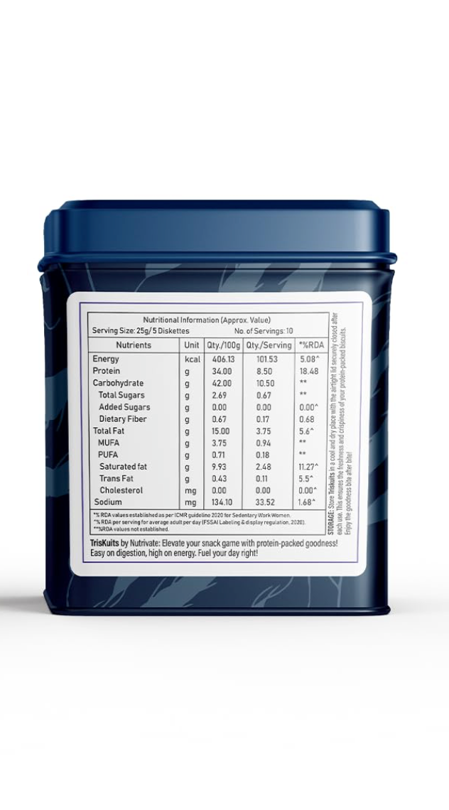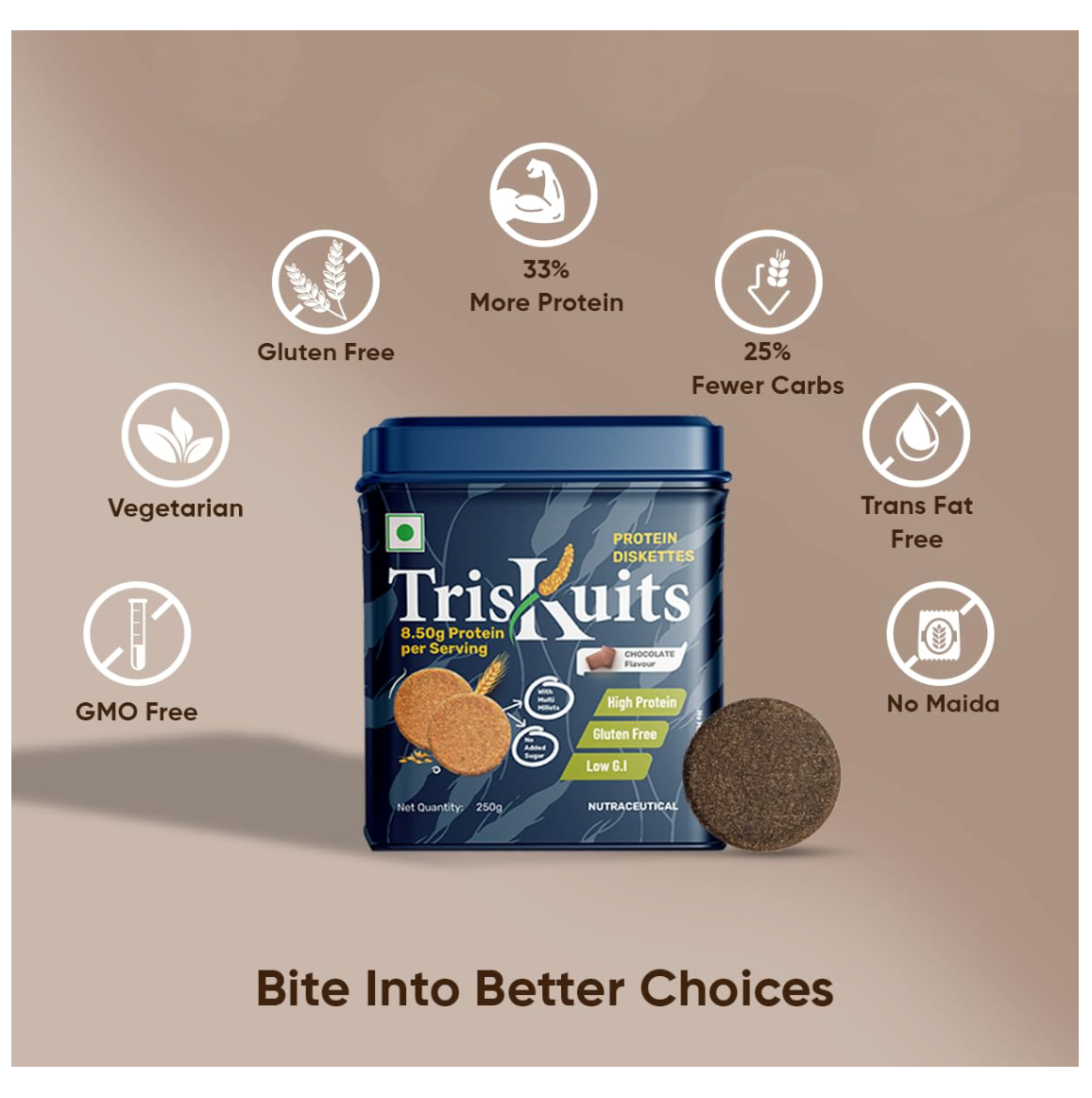 Triskuits by NUTRIVATE | High Protein Diskettes | 100% Veg | Enriched with Casein Protein and made with Multi-Grain Millets has Low GI, No Added Sugar, Gluten-Free, Trans-Fat Free | Chocolate